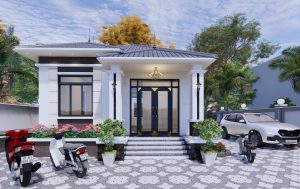 Nhà Vườn 1 Tầng kiến tạo không gian hòa hợp thiên nhiên, tối ưu công năng trên mặt sàn. Thiết kế mang lại sự thuận tiện di chuyển và giải pháp xây dựng hiệu quả, tiết kiệm.