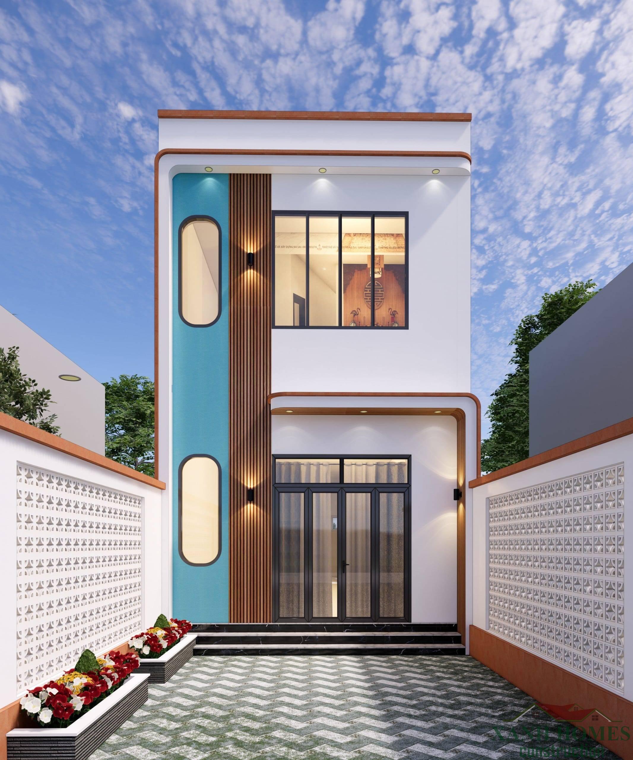 - Nhà mái nhật 2 tầng đẹp XanhHomes: mẫu nhà hài hòa ánh sáng, bố cục tinh gọn, mặt tiền cuốn hút, tối ưu công năng, chi phí hợp lý, bền vững theo năm tháng