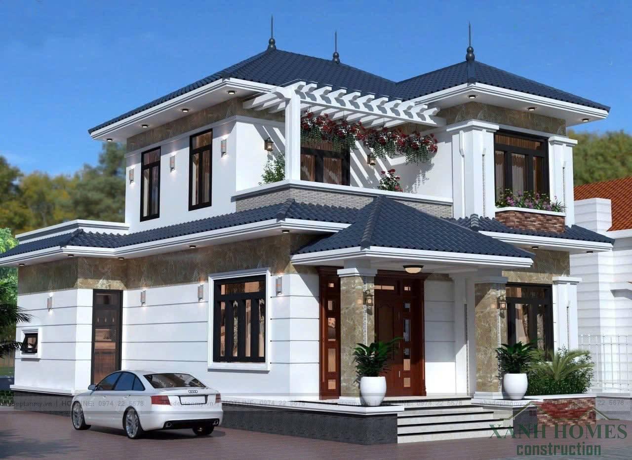 Đây là sự kết hợp hài hòa giữa các chi tiết cổ điển như cột trụ, phào chỉ với kiến trúc mái nhật hiện đại. Mẫu nhà này mang đến vẻ đẹp quý phái, trang nhã phù hợp với những chủ nhà yêu thích nét đẹp truyền thống nhưng vẫn muốn không gian sinh hoạt tiện nghi.